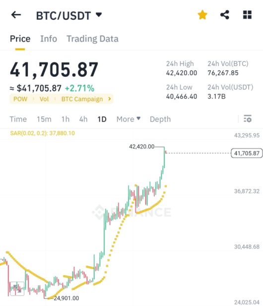 비트코인은 전날 4만달러를 넘어선데 이어 4만2000달러선까지 단숨에 근접했다.