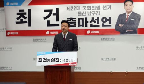 (울산=연합뉴스) 허광무 기자 = 최건 변호사가 내년 22대 총선에서 국민의힘 후보로 울산 남구갑에 출마하겠다고 공식 선언했다.