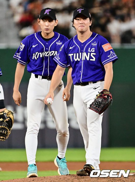 [OSEN=부산, 이석우 기자]나눔 올스타 이정후가 고우석을 마운드에 내보내고 투구를 지켜보고 있다. 2023.07.15 / foto0307@osen.co.kr |