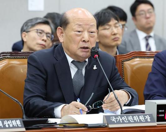 송두환 국가인권위원회 위원장이 지난달 8일 국회에서 열린 운영위원회의 국가인권위원회 국정감사에서 질의에 답변하고 있다. 뉴스1 |