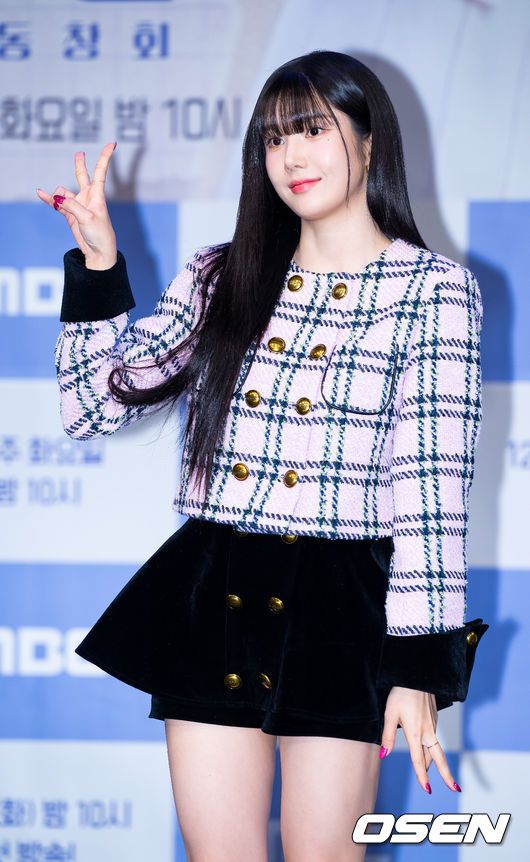 [OSEN=민경훈 기자] 5일 오후 서울 마포구 상암 MBC 골든마우스홀에서 MBC 새 예능 '솔로동창회 학연' 제작발표회가 열렸다. 가수 권은비가 포즈를 취하고 있다. 2023.11.05 / rumi@osen.co.kr