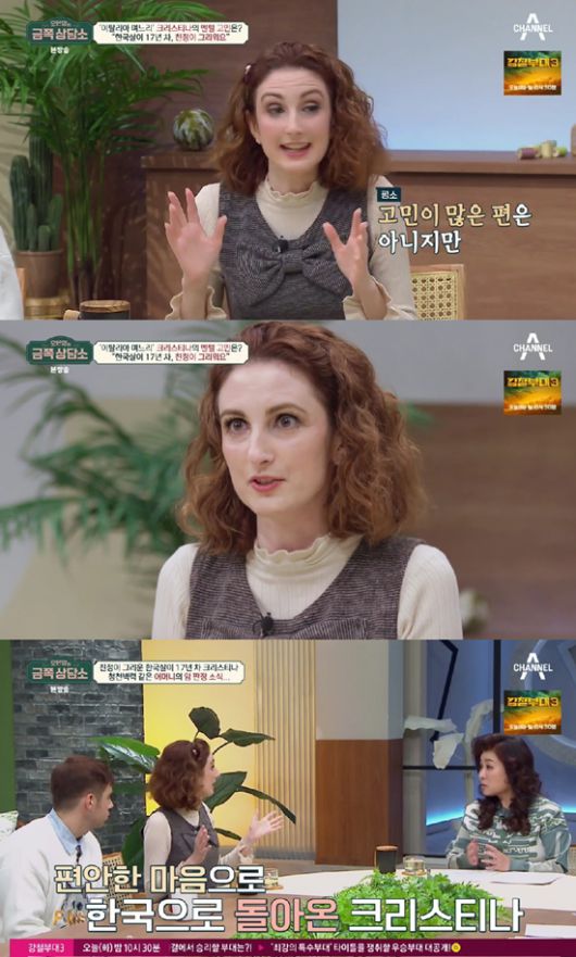 한국살이17년 차 크리스티나는 "제가 많이 고민하는 편은 아니지만 고민할 때도 있다"라며 이탈리아 가족에 대한 그리움을 털어놨다. 1년에 한 번씩 이탈리아를 갔던 크리스티나는 "코로나19 때문에 길게 못 갔다"라고 입을 열었다.