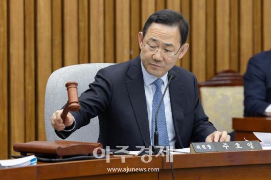 주호영 대법원장 인사청문특별위원장이 5일 오후 서울 여의도 국회에서 열린 조희대 대법원장 후보자 임명동의에 관한 인사청문특별위원회 전체회의에서 의사봉을 두드리고 있다. 2023.12.05