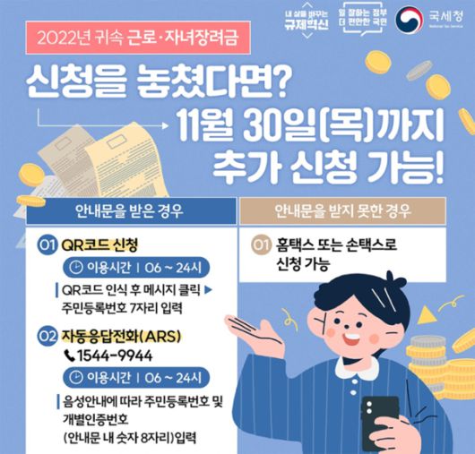 2023년 근로장려금과 자녀장려금 정기신청기간과 기한후 신청기간이 11월 30일자로 마감됐다.