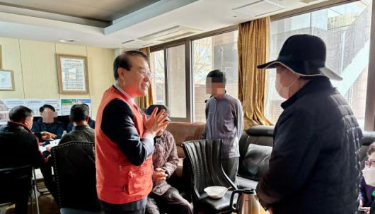 5일 오후 윤형선 국민의힘 인천 계양을 당협위원장이(가운데) 계양센트레빌 1단지 경로당 봉사 현장에서 지역 주민과 이야기를 나누고 있다. [사진=김민우 수습기자] |