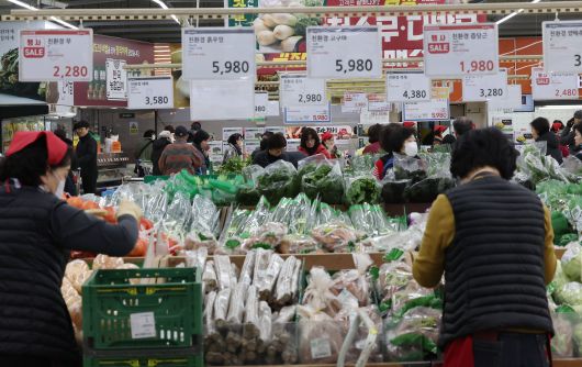 통계청이 11월 소비자물가 동향을 발표한 5일 오후 서울 시내 마트에서 소비자들이 채소를 고르고 있다. 소비자물가는 4개월 연속 3%대 오름세를 이어갔다. /연합뉴스 |