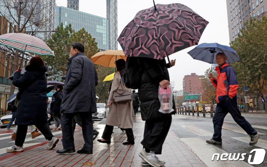 낮에 북부를 중심으로 비가 시작돼 늦은 오후 한때 대부분 지역으로 확대된다. 예상강수량은 5㎜ 내외다.