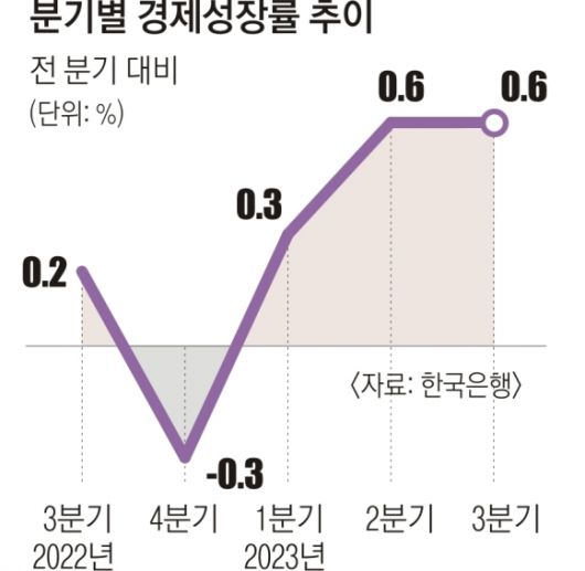 수출이 소폭 개선된 덕에 3분기(7~9월) 한국 경제가 힘겹게 0.6% 성장을 했다. 올해 경제성장률 목표치(1.4%) 달성은 가능해질 전망이다. 다만 반도체 업황이 개선되고 수출이 살아나도 내년 우리 경제의 극적인 반등은 어려울 것으로 보인다.