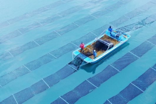 충남 태안군 남면 진산어촌계 어민들이 5일 지주식으로 재배한 김을 채취하고 있다. 지주식은 기둥에 달린 김발이 바닷물에 잠겼다가 햇볕에 노출되기를 반복하는 재배 방식이다. 병충해 약품을 쓰지 않는 유기농 김을 생산하는 데 지주식 방식이 주로 쓰인다.