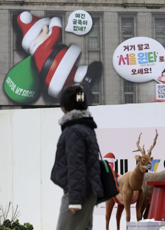 연말연시 겨울축제 ‘서울윈타’로 오세요 - 서울 종로구 서울도서관 외벽 꿈 새김판에 5일 ‘서울윈타 2023’ 홍보 현수막이 걸려 있다. 서울시는 오는 15일부터 산발적으로 열리던 연말연시 행사를 한데 모아 초대형 도심 축제로 개최한다. 뉴시스 |