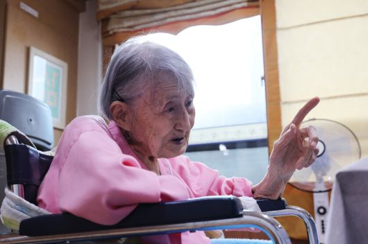올해 8월14일 본인이 기거 중인 경기도 안양의 한 요양원 면회실에서 한겨레와 만난 엄주분(98)씨. 신소영 기자 viator@hani.co.kr |