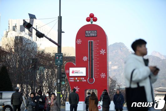 서울 종로구 광화문광장에 사랑의 온도탑이 점등돼 있다. 사랑의 온도탑 모금은 내년 1월31일까지 진행된다. 나눔 목표액은 4349억원이다. ⓒ News1 이승배 기자 |