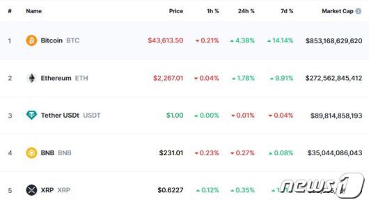 이날 비트코인은 최고 4만4062 달러, 최저 4만1421 달러 사이에서 거래되고 있다.