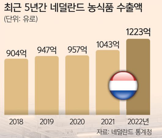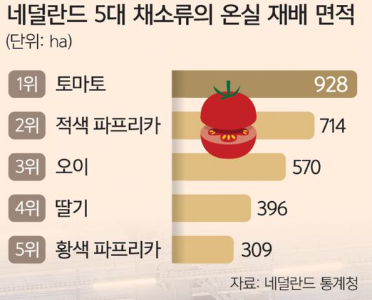네덜란드는 독보적으로 앞서나가는 스마트팜 강국이다. 스마트팜 보급률이 무려 99%다. 육지 면적이 경상도 크기와 비슷한 약 3만3000㎢에 불과한데도 미국에 이은 세계 2위 농식품 수출국으로 자리 잡은 비결 중 하나가 스마트팜이다. 네덜란드는 미국의 240분의 1에 불과한 땅 크기, 소금기 많은 토양, 비가 많이 내리는 해양성 기후 등의 악조건을 기술력으로 극복해 냈다.