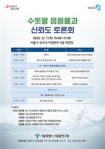 서울시, '수돗물 음용률과 신뢰도 토론회' 홍보 포스터 |