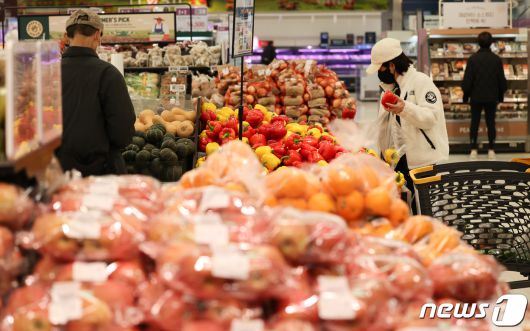 11월 소비자물가가 전년 동월 대비 3.3% 오른 것으로 나타났다. 지난 7월(2.3%) 이후 가장 낮은 수준으로 상승 폭이 넉 달 만에 감소 전환했다. 사진은 이날 서울 시내 한 대형마트에서 장을 보는 시민들 모습. 2023.12.5/뉴스1 ⓒ News1 허경 기자 |