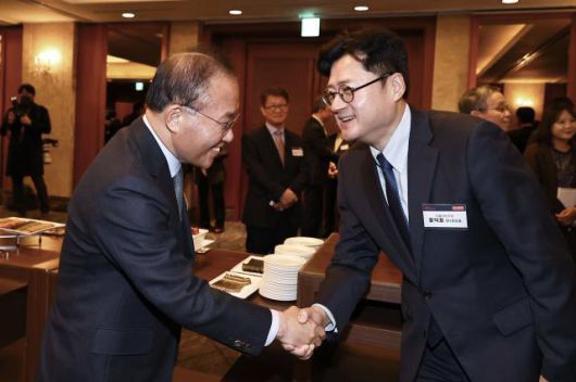 포럼에서 만난 여야 원내대표 (서울=연합뉴스) 국민의힘 윤재옥 원내대표와 더불어민주당 홍익표 원내대표가 29일 중구 롯데호텔에서 열린 '2023 중앙포럼'에서 인사하고 있다. 2023.11.29 [국회사진기자단] xyz@yna.co.kr/2023-11-29 11:28:08/ <저작권자 ⓒ 1980-2023 ㈜연합뉴스. 무단 전재 재배포 금지.>[<저작권자 ⓒ 1980-2023 ㈜연합뉴스. 무단 전재 재배포 금지.>] |