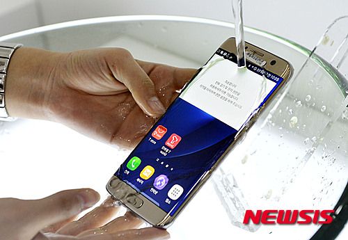 [서울=뉴시스]최동준 기자 = 10일 오전 서울 중구 신라호텔에서 열린 '삼성전자 갤럭시 S7 미디어데이' 행사에서 모델이 갤럭시 S7의 방수·방진 기능을 소개하고 있다. 2016.03.10. photocdj@newsis.com |