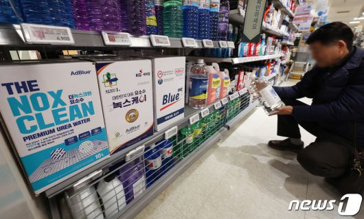중국 통관이 한국에 대한 차량용 요소 수출을 지연시키면서 수급 불안이 커지고 있는 가운데 4일 오전 서울 시내의 한 마트에서 시민이 차량용 요소수를 고르고 있다. 정부는 이날 요소수 수입 현황 파악을 위한 민관 합동 긴급회의를 열고 상황 점검에 나서기로 했다. 2023.12.4/뉴스1 ⓒ News1 김민지 기자 |