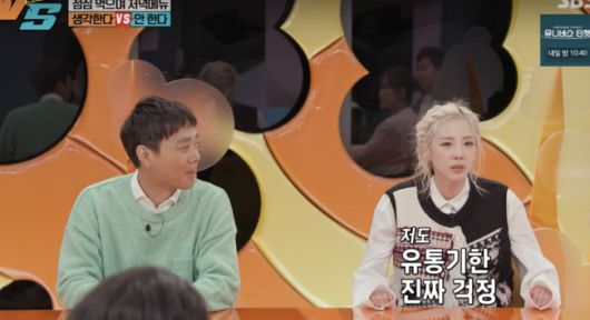 하지만 산다라박은 나름“뭐라도 먹어야겠다고 다음 끼니를 생각하는 편, 하루에 두 끼는 먹으려 한다”며 나름 먹부심을 전했다.산다라박은 “음식을 사랑하고 맛있게 먹는 법을 안다”며 너스레를 떨었다. 하지만 산다라박은 “유통기한이 걱정이다”며 사두고 못 먹은게 많다고 덧붙이며 다시 한번 소식가 모습을 보였다.
