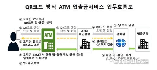 금융정보화추진협의회(의장 유상대)와 금융결제원, 국내은행들은 6일부터 스마트폰 기종 제한 없이 은행권 현금자동인출기(ATM) 입출금이 가능한 'QR코드 방식의 ATM 입출금서비스'를 시작한다고 6일 밝혔다.