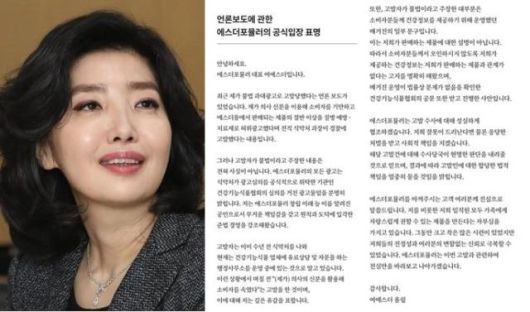 지난 5일 여에스더는 에스더포뮬러 공식 홈페이지에 입장문을 올렸다.