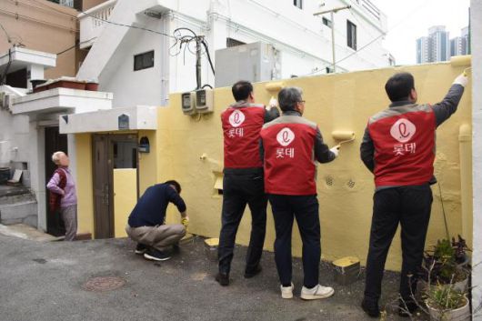 롯데건설 샤롯데 봉사단이 건설업 연계 대표 사회공헌인 ‘꿈과 희망의 러브하우스’ 봉사활동에 참여하고 있다.[사진=롯데건설] |