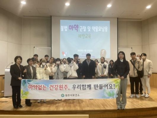 [스포츠서울ㅣ원주=김기원기자] 원주시보건소는 최근 대두되고 있는 마약 관련 범죄를 예방하기 위해 관내 3개 대학교 190여 명 학생들을 대상으로 불법 마약 근절 및 약물 오남용 예방을 위한 교육을 실시했다.
