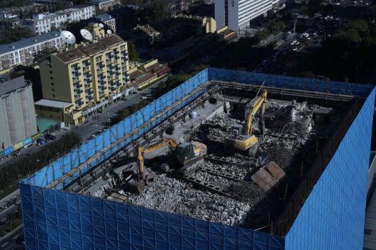 중국 베이징에서 굴삭기가 작업을 하고 있다. 베이징/AP연합뉴스 |