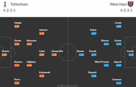 서튼은 "토트넘에 있어 까다로운 경기다. 포스테코글루 감독은 공격적인 플레이를 좋아하지만 웨스트햄을 이끄는 데이비드 모예스 감독이 가만두지 않기 때문이다. 지난 9월 웨스트햄은 점유율 22%만으로 브라이튼을 잡았으며 이번 경기에서 다시 시도할 수 있다. 매우 두텁게 수비한 다음 역습할 것이다. 토트넘이 웨스트햄을 이길 거라 생각하지만 그렇다고 해서 손쉽게 승리할 수 있을 것 같진 않다"라고 평가했다. 그러면서 토트넘이 웨스트햄에 펠레 스코어 3-2로 승리할 거라 전망했다. 토트넘은 손흥민을 비롯해 브레넌 존슨, 데얀 쿨루셉스키 등이 해결사로 나선다.