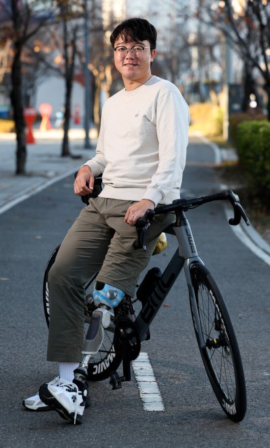“2020 도쿄패럴림픽 금메달리스트 대런 힉스(호주)를 대회장 근처 식당에서 우연히 만나 ‘당신 덕분에 다시 꿈을 꾸게 돼 여기까지 왔다’고 말하니 박수를 쳐 줬어요.” “미국 선수 토드 키는 ‘의족을 착용하고 양쪽 다리로 페달을 굴리는 C3 등급이 아닌, 절단된 다리를 자전거 몸체에 고정해 두고 한쪽 다리로만 페달을 굴리는 C2 등급에 출전하면 훨씬 유리할 것’이라고 했어요. 다음 대회부터는 등급을 바꿔 출전하려 준비 중이에요.”