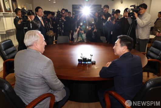 [서울=뉴스핌] 이형석 기자 = 김기현 국민의힘 대표(오른쪽)와 인요한 혁신위원장이 17일 오전 서울 여의도 당사에서 면담을 하고 있다. 2023.11.17 leehs@newspim.com |