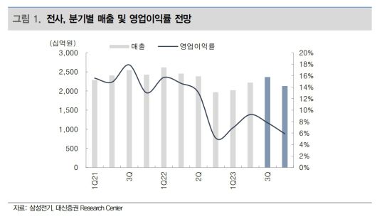 박강호 대신증권 연구원은 “내년 주요 IT기기의 성장 속에 MLCC(적층세라믹콘덴서), 반도체 기판 등 매출 확대, 수익성 개선으로 연간 영업이익은 2024년(8298억 원) 26.9%(yoy), 2025년(1.13조원) 36.5%(yoy) 증가 추정된다”고 밝혔다.