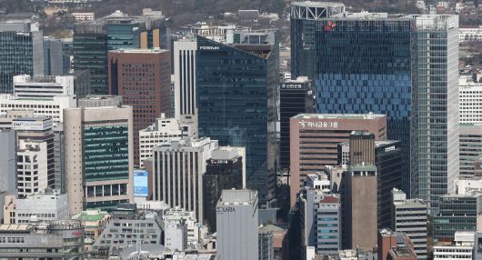 서울 남산에서 바라본 도심 주요 기업체 건물들./연합뉴스 |