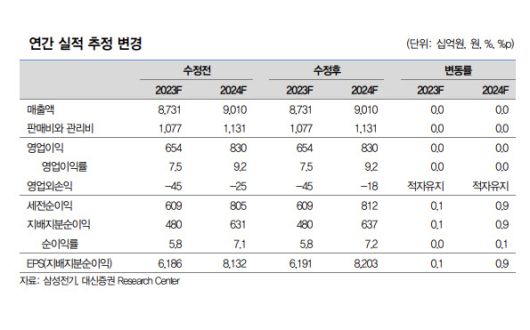 6일 박강호 대신증권 연구원은 “2024년 주요 IT기기의 성장 속에 적층세라믹콘덴서(MLCC), 반도체 기판 등의 매출 확대가 기대된다”면서 “수익성 개선으로 내년 영업이익은 전년 동기보다 26.9% 증가한 8298억원에 달할 것으로 보인다”고 말했다.