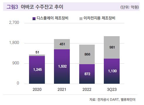 [이데일리 김보겸 기자] 독립리서치 밸류파인더가 아바코(083930)에 대해 전방산업 투자 확대로 올해 4000억원 수주잔고를 확보할 것으로 전망했다. LG디스플레이(034220) 장비 투자 재개로 OLED 진공 물류 장비 수주 기대감이 커지고 있다는 평가다.