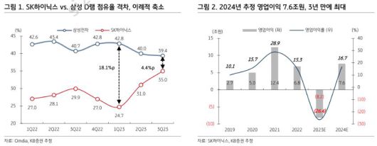 아울러 그는 “현 시점은 HBM과 DDR5 부문에서 선두 업체로서의 기술과 원가 경쟁력을 기반으로 SK하이닉스의 D램 미래 성장판이 열리는 시기로 판단된다”면서 “2024년 SK하이닉스 영업이익은 7조6000억 원으로 추정되어 2021년 (12조4000억 원) 이후 3년 만에 최대 실적이 예상되고, 올해 4분기부터 내년 4분기까지 우 상향의 실적 개선 추세를 나타낼 전망”이라고 말했다.