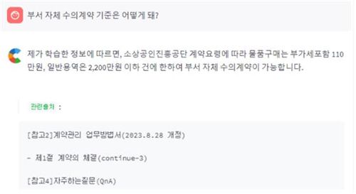 (서울=연합뉴스) 박상돈 기자 = 소상공인시장진흥공단은 지난 10월 생성형 인공지능(AI) 챗봇 '김계약 주임'을 도입해 계약 업무 효율이 향상됐다고 6일 밝혔다.