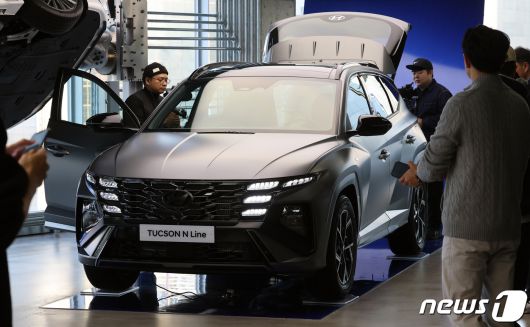 (서울=뉴스1) 김진환 기자 = 현대자동차가 6일 준중형 스포츠유틸리티차량(SUV) '투싼'의 부분변경 모델인 '더 뉴 투싼'을 출시한다. ‘더 뉴 투싼’은 현대차가 2020년 9월 출시된 4세대 모델의 상품 경쟁력을 끌어올려 3년여 만에 선보이는 부분변경 모델이다. 사진은 지난 5일 서울 강남구 언주로 현대 모터스튜디오 서울에서 공개된 ‘더 뉴 투싼’. 2023.12.6/뉴스1