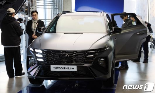 (서울=뉴스1) 김진환 기자 = 현대자동차가 6일 준중형 스포츠유틸리티차량(SUV) '투싼'의 부분변경 모델인 '더 뉴 투싼'을 출시한다. ‘더 뉴 투싼’은 현대차가 2020년 9월 출시된 4세대 모델의 상품 경쟁력을 끌어올려 3년여 만에 선보이는 부분변경 모델이다. 사진은 지난 5일 서울 강남구 언주로 현대 모터스튜디오 서울에서 공개된 ‘더 뉴 투싼’. 2023.12.6/뉴스1