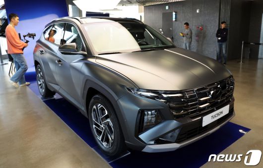 (서울=뉴스1) 김진환 기자 = 현대자동차가 6일 준중형 스포츠유틸리티차량(SUV) '투싼'의 부분변경 모델인 '더 뉴 투싼'을 출시한다. ‘더 뉴 투싼’은 현대차가 2020년 9월 출시된 4세대 모델의 상품 경쟁력을 끌어올려 3년여 만에 선보이는 부분변경 모델이다. 사진은 지난 5일 서울 강남구 언주로 현대 모터스튜디오 서울에서 공개된 ‘더 뉴 투싼’. 2023.12.6/뉴스1