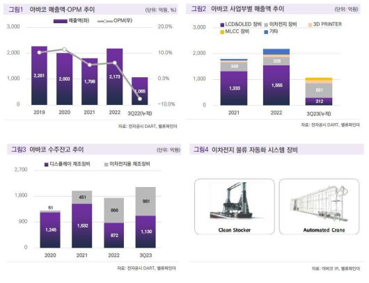 이어 “LG디스플레이의 디스플레이 장비 투자 재개도 아바코의 수혜(물류 장비 수주 예상액 1000억~2000억원)로 이어질 수 있고, 내년 초 MLCC 제조 장비 발주도 기대된다”면서 “아바코가 지난 11월 상주 제 6공장을 완공하면서, 올해 확보한 수주잔고와 내년 신규 수주 물량에 대응할 수 있는 상황인 것으로 보인다”고 했다.