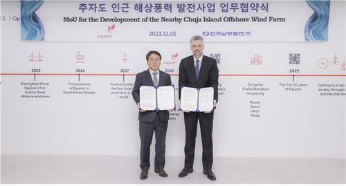 (부산=연합뉴스) 민영규 기자 = 한국남부발전은 노르웨이 에너지 기업인 에퀴노르와 제주 추자도 인근 해상풍력 프로젝트를 위해 협력한다고 6일 밝혔다.