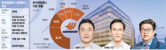 한국앤컴퍼니의 한 관계자는 “조현범 회장은 현재 경영권을 안정적으로 유지하는 데 아무런 문제가 없다”면서 “MBK의 인수 가격 이상으로 장내에서 지분을 매집하거나 공개매수를 선언할 자금 여력도 충분하다”고 말했다. 현재는 고려하고 있지 않지만 상황에 따라 MBK의 주당 인수 가격(2만 원)보다 높은 가격대로 추가 지분 매입에 나설 수도 있다는 얘기다.