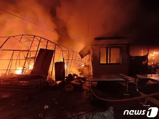 (괴산=뉴스1) = 5일 오후 11시4분쯤 충북 괴산군 청안면 운곡리의 한 비닐하우스에서 불이 나 40여분 만에 진화됐다.(괴산소방서 제공)/뉴스1 Copyright ⓒ 뉴스1. All rights reserved. 무단 전재 및 재배포, AI학습 이용 금지.