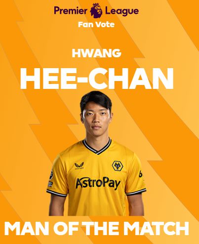 결승골로 승리 주역이 된 황희찬은 이번 경기 공식 최우수 선수로 선정됐다. 경기 후 진행된 맨 오브 더 매치 투표에서 총 1만147표 중 83.5%라는 압도적인 득표율로 1위에 올랐다. 선방쇼를 펼친 울버햄프턴 골키퍼 대니얼 벤틀리는 2위를 차지했지만 득표율 6.4%로 크게 밀렸다.
