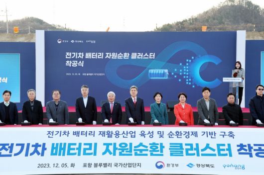6일 포항시에 따르면 포항블루밸리 국가산단에서 전날 전기차 배터리 순환 경제의 국가 기반 구축을 위한 '전기차 배터리 자원순환 클러스터' 착공식이 열렸다.