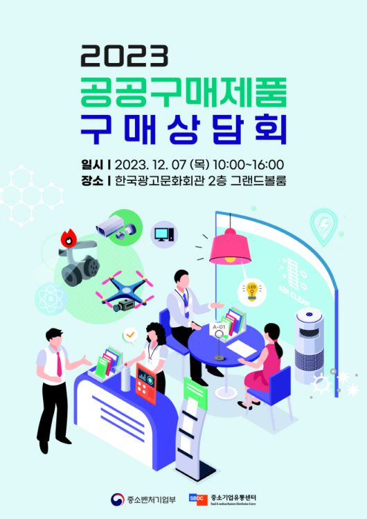아시아투데이 오세은 기자 = 중소기업유통센터는 7일 서울 송파구에 있는 한국광고문화회관에서 '공공구매제품 구매상담회'를 개최한다고 6일 밝혔다.