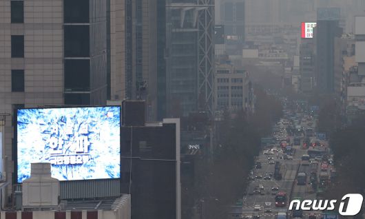 (서울=뉴스1) 김민지 기자 = 전국 대부분 지역에 초미세먼지 농도가 '나쁨' 수준을 보인 6일 오전 서울 종로구 서울시교육청에서 바라본 도심 일대가 뿌옇다. 2023.12.6/뉴스1kimkim@news1.krCopyright ⓒ 뉴스1. All rights reserved. 무단 전재 및 재배포, AI학습 이용 금지.