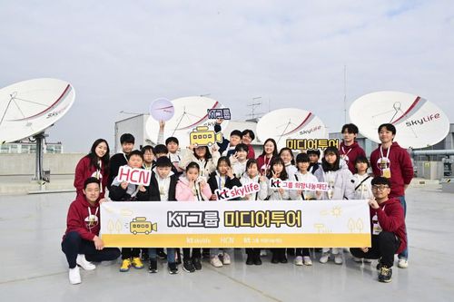 ▲ KT스카이라이프[053210]는 KT그룹희망나눔재단, HCN과 함께 KT그룹 꿈나무 미디어 투어를 진행했다고 6일 밝혔다. 이번 행사에는 스카이라이프 본사가 있는 서울 마포구 소재 아동 복지기관 '마포드림스타트'의 추천을 받은 초등학생 18명이 참가했다. 참여한 학생들은 방송 제작 현장을 견학하며 미디어 분야의 진로에 대해 들었다. (서울=연합뉴스)